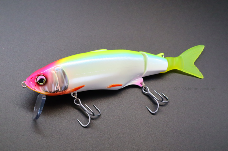 アングラーからの視認性をupさせるピンクヘッド+チャートバックの組み合わせ。ボディーには高純度パールによる効果でシルエット&存在感を際立たせます。